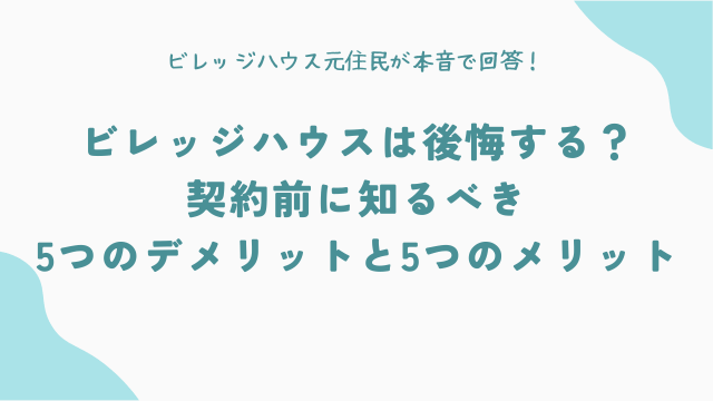 【元住民が本音で回答】ビレッジハウスは後悔する?契約前に知るべき5つのデメリットと5つのメリット