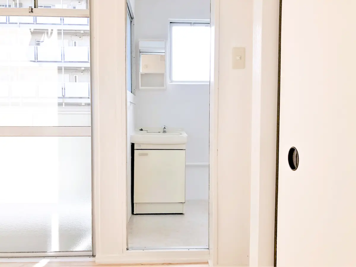 これがこの間取り最大のユニークポイント。普通は家の奥まった場所にある浴室と洗面所が、バルコニーに面しています。これはつまり、お風呂に窓があるということ!湿気がこもりにくく、カビ対策になるのはもちろん、日中は明るい光の中で入浴できるという、他では味わえない特別な体験ができます。 - コンパクトながら工夫が光る3DK