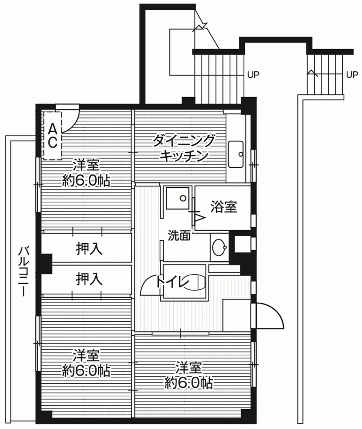 これが最大のポイント。私は5階に住んでいたので断言できますが、階段はキツイです(笑)。でも、そのおかげで上層階は家賃が安く設定されていることが多いんです。「体力に自信あり」な人にとっては、最高のコストカット術になります。 - 2種類の間取り