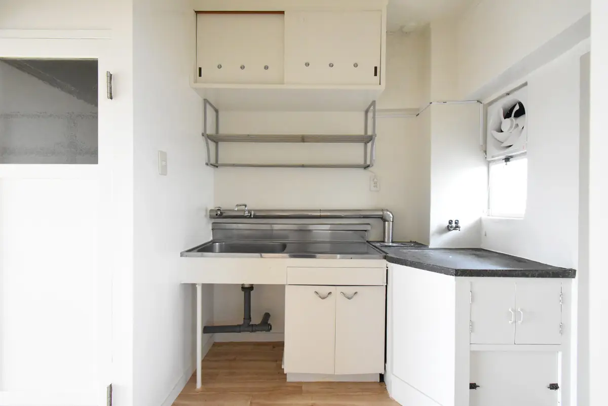 確かに古いですが、RC造なので建物は頑丈。中はフルリフォームされているので、古さは感じにくいです。この築年数だからこそ、周辺相場より圧倒的に安い家賃が実現しています。 - エレベーターなしの5階建て