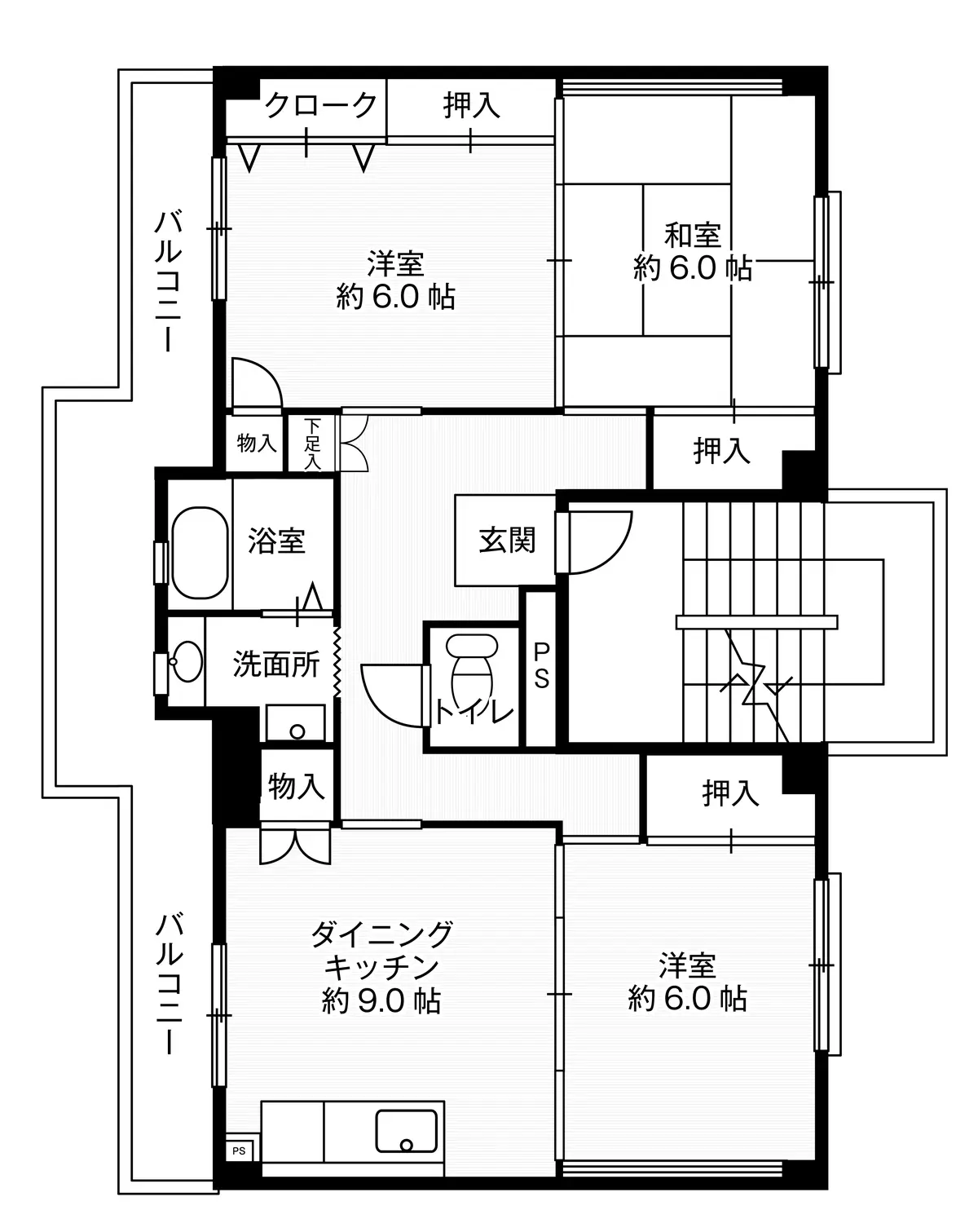 ビレッジハウス下島には、主に「3DK」と「2K」の2つの間取りがあります。